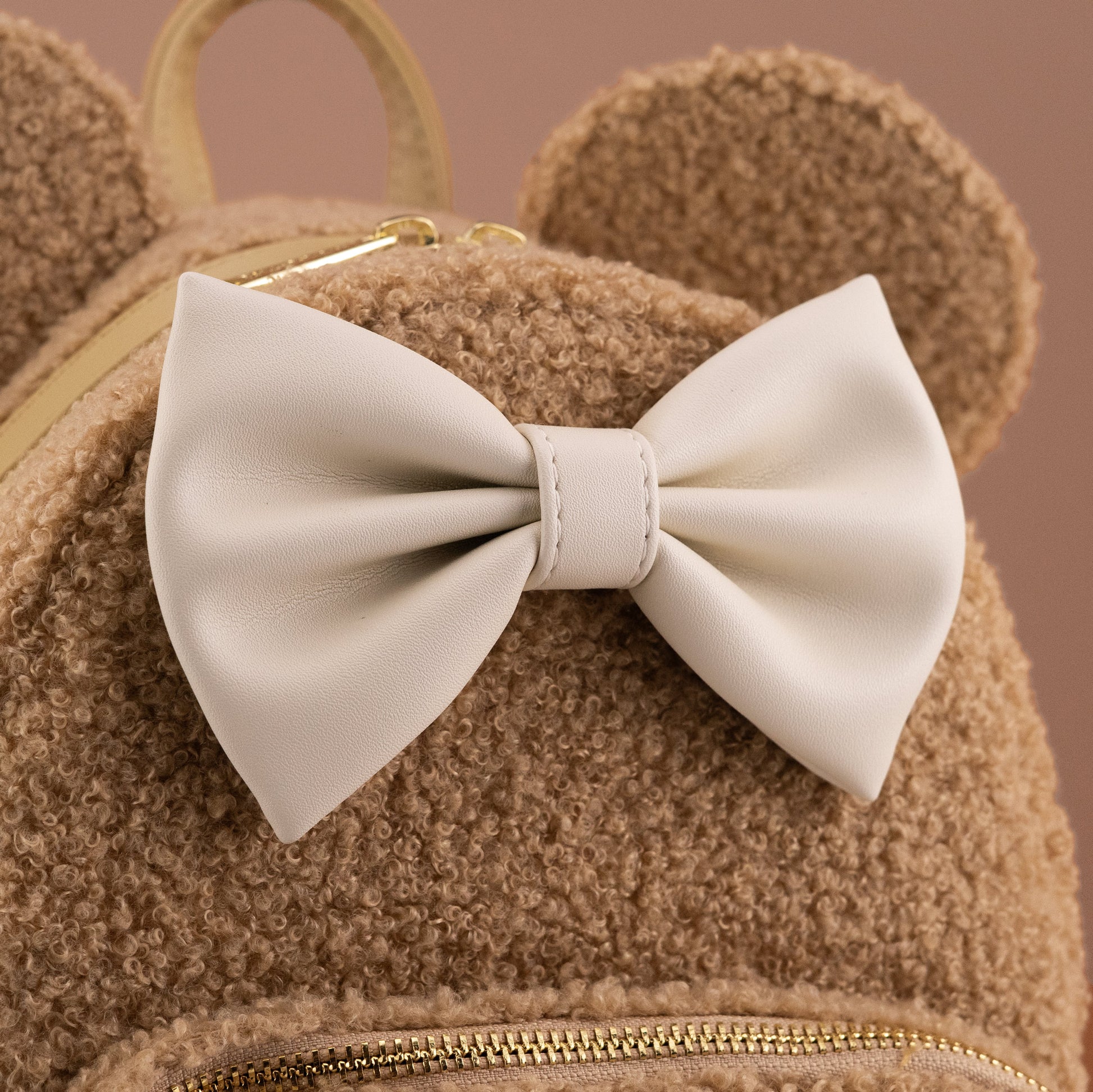 - 3D Minnie ears and appliqué faux leather bow